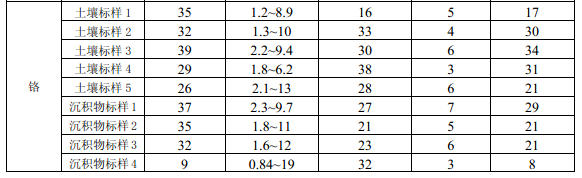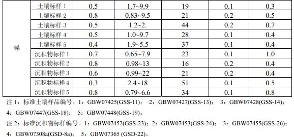 6 家實(shí)驗(yàn)室分別用電熱板消解法和微波消解法對(duì)5 種不同含量水平的統(tǒng)一標(biāo)準(zhǔn)土壤樣品 和沉積物樣品進(jìn)行測(cè)定,電熱板消解法的精密度匯總數(shù)據(jù)見附錄 B 中的表 B.1,微波消解法 的精密度匯總數(shù)據(jù)見附錄B 中的表B.2。