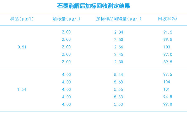 采用石墨消解法對固體廢物浸出液進行消解,操作方法簡便,儀器使用成本低;同時可以對25個樣品進行消解;無線控制系統,讓實驗人員遠離實驗過程酸霧對人體直接醺到,實驗結果測定消解液中的汞檢出限低、測量范圍寬、重復性好,滿足固廢浸出液中總汞的測定要求。