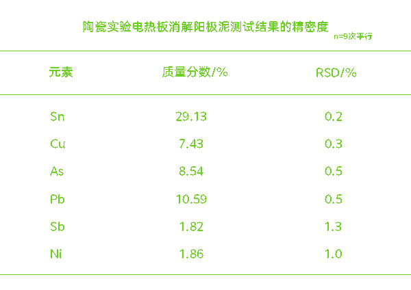 陶瓷實驗電熱板9平行次消解陽極泥精密度結果
